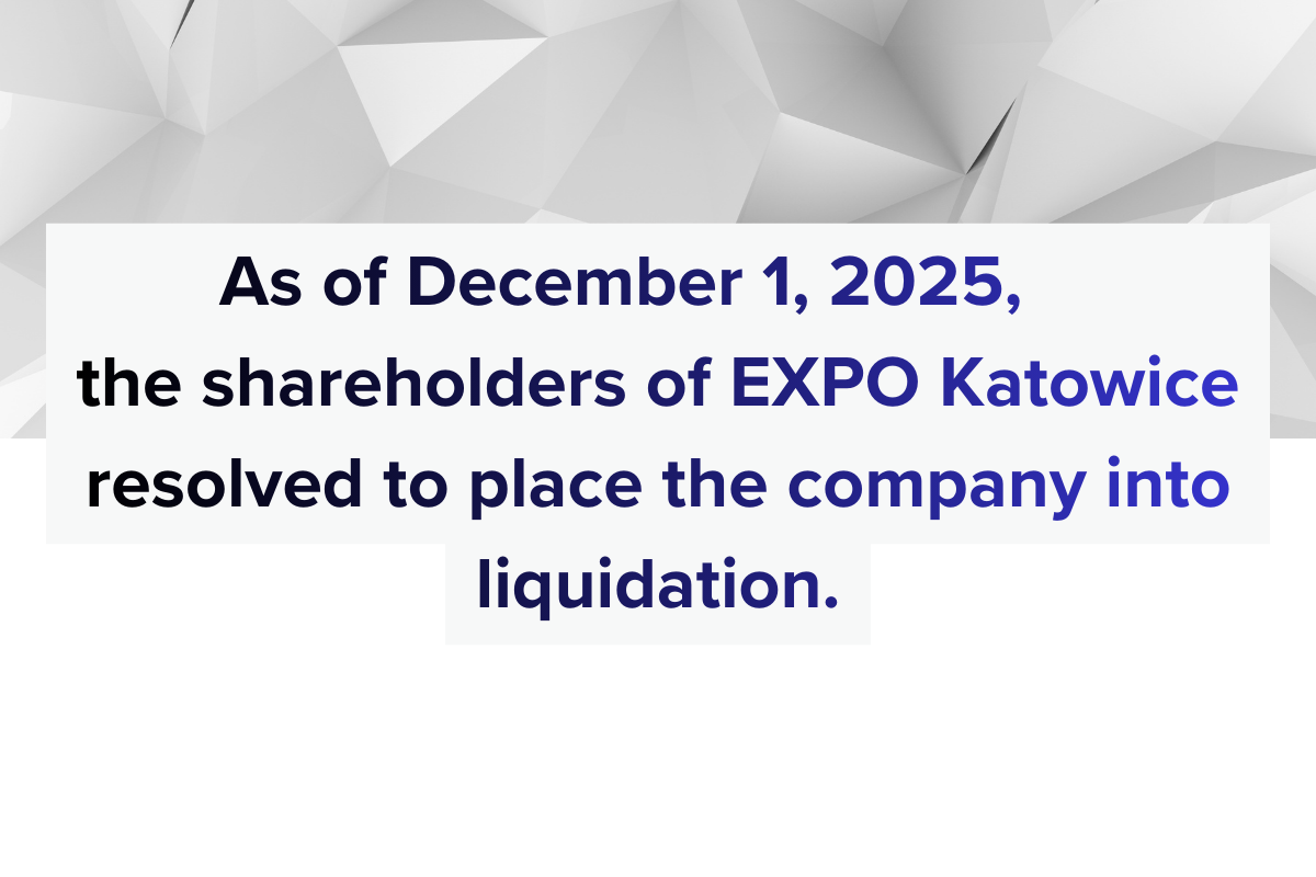 The shareholders of EXPO Katowice S.A. have resolved to place the Company into liquidation as of December 1, 2025. This decision initiates standard liquidation procedures in accordance with applicable commercial law regulations.